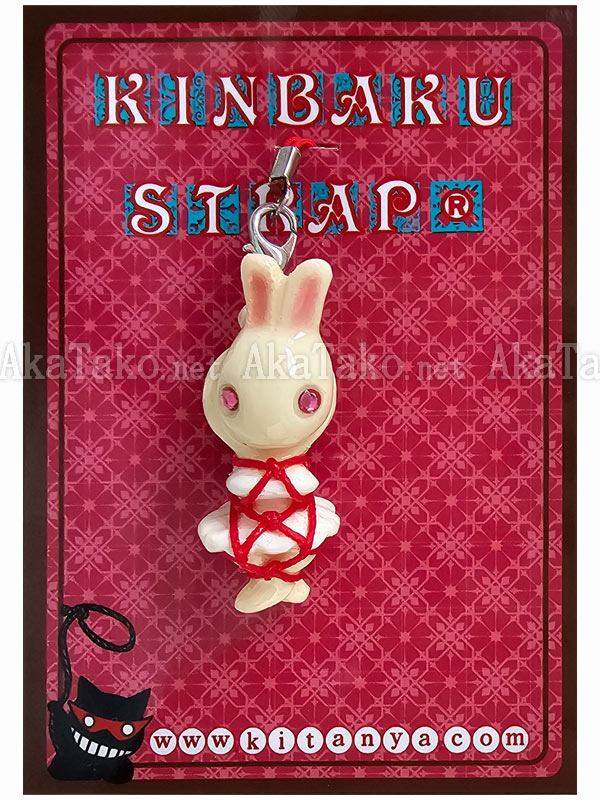 Caught in mid-plié this cream colored bunny has crossed legs and a white tutu. Neatly tied Japanese rope bondage keeps her pose perfect. Kinbaku cell phone strap handmade in Japan and signed by the artist (in red on back). Comes on a paper display card as shown in second photo and has a lobster claw clasp to make attachment easier.