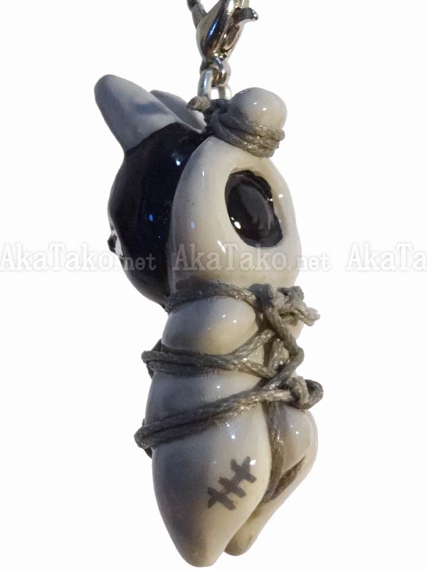 Light gray bunny is all tied up in gray rope with a black mask on - ready for some grayscale rope bondage! Kinbaku cell phone strap handmade in Japan and signed by the artist (in gray on back). Comes on a paper display card as shown in second photo and has a lobster claw clasp to make attachment easier.
