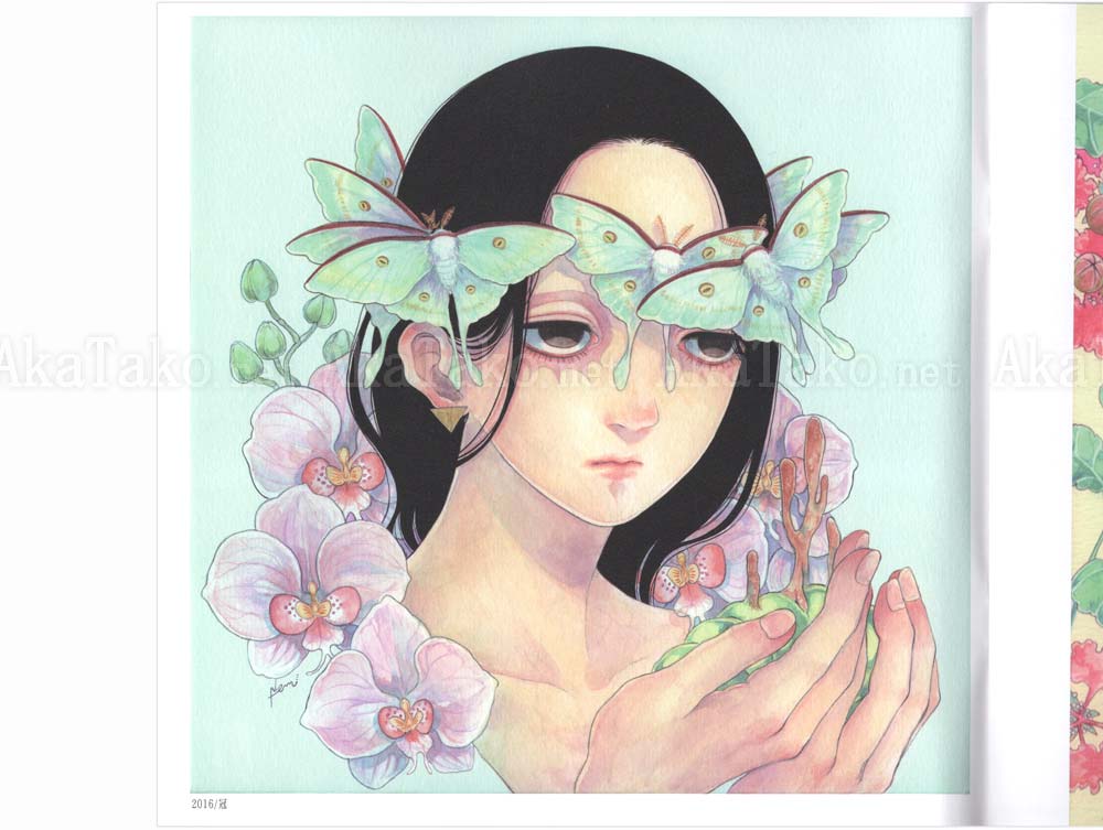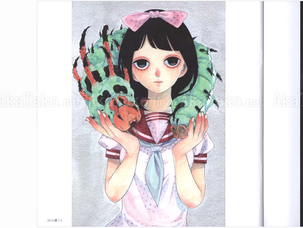 Brand new book of Em Nishizuka artworks with girls and boys adorning their bodies and clothes with insects. Hair ornaments, earrings, and the favorite caterpillar scarf. Approximately 30 full color illustrations.