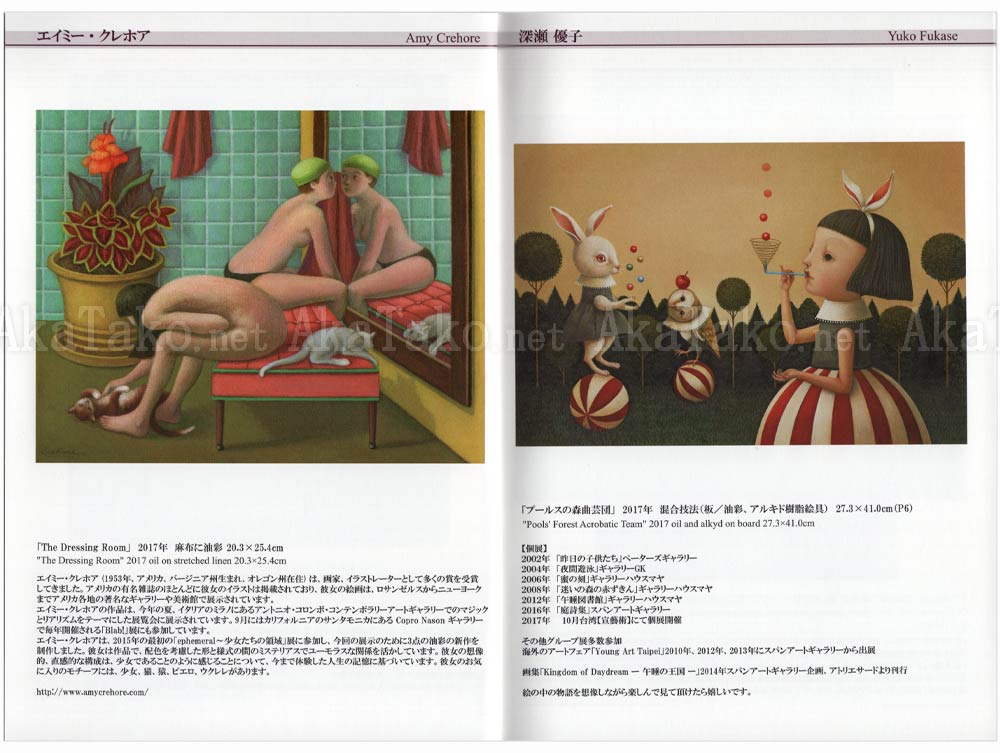 Bilingual (Japanese/English) introduction written by Toshiki Soma. Other text is a mix of Japanese and English. Full list of artists: Emi Adachi, Nicoletta Ceccoli, Amy Crehore, Yuko Fukase, Atsuko Goto, Mao Hamaguchi, Kumiko Higami, Miho Hirano, Miki Katoh, Chihiro Kogure, Kozue Kouroki, Kimi Kuruhara, Satomi Kuwahara, Selena Leardini, Shiori Matsumoto, Eri Mizuno, Virginia Mori, Yuko Murai, Yuko Nagami, Yuki Nagayoshi, Yumi Nakai, Kaori Ogawa, Ozabu, Yuka Sakuma, Mayuko Sasaoka, Amy Sol, Minae Takada, Ania Tomicka, Tsubaki Torii, Fuco Ueda, Chie Yoshii.