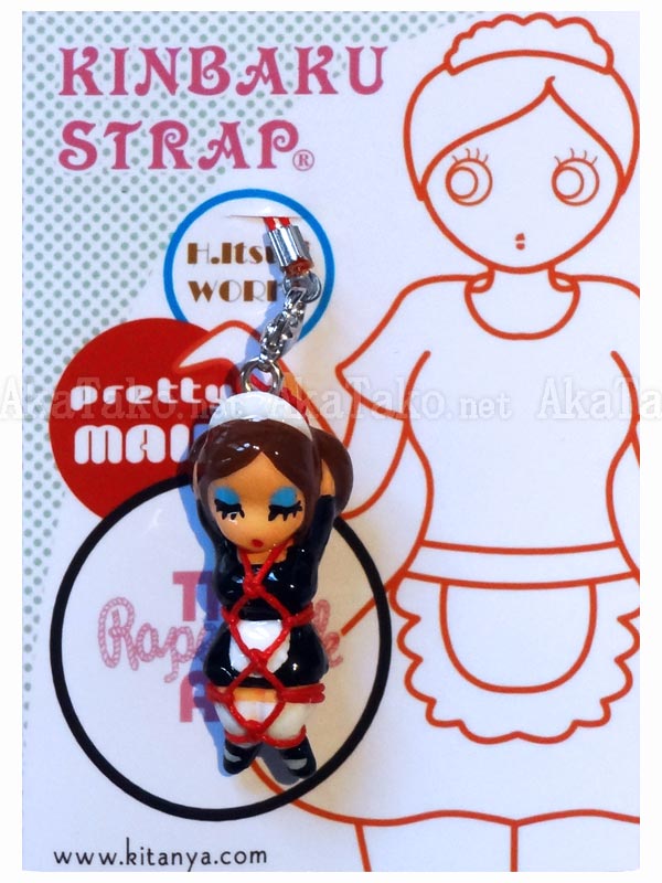 French maid lady karada kinbaku charm. Kinbaku cell phone strap handmade in Japan and signed by the artist (in red on back). Comes on a paper display card as shown in second photo and has a lobster claw clasp to make attachment easier.