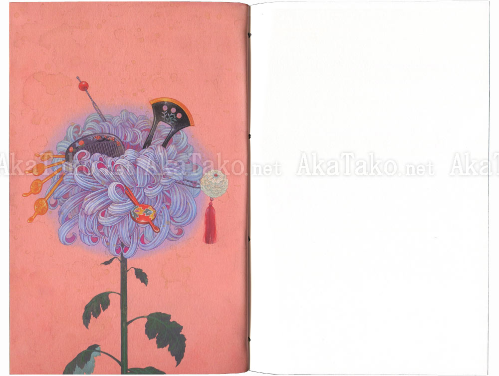 Handmade unlined notebook features four chrysanthemum works by Fuco Ueda "Hairdressing", "Fragment of Daydream 4", "Leftover Dream", and "Fragment of Daydream 2".