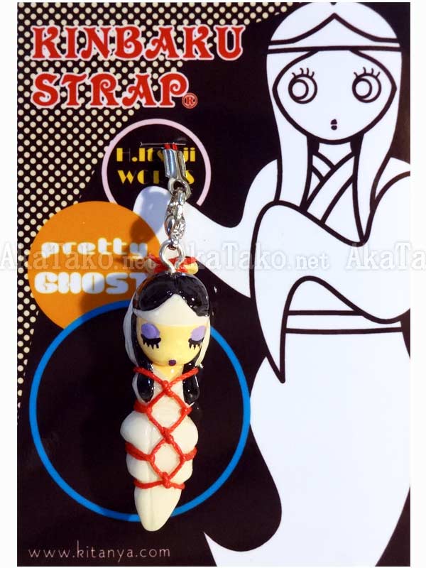 This pretty Japanese ghost lady has been tied up in karada pattern rope bondage. Kinbaku cell phone strap handmade in Japan and signed by the artist (in red on back). Comes on a paper display card as shown in second photo and has a lobster claw clasp to make attachment easier.