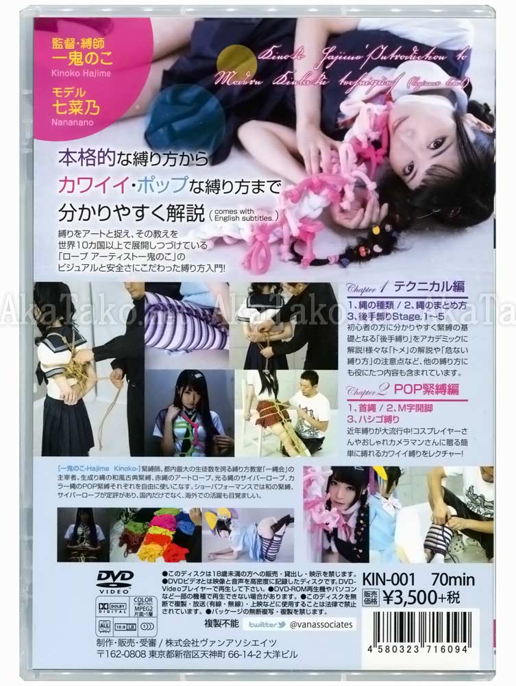Instructional DVD with English subtitles explores the kinbaku techniques that Hajime Kinoko teaches in his rope bondage classes. Part 1: all the technical aspects. Part 2: "POP" style with focus on the artistic side.