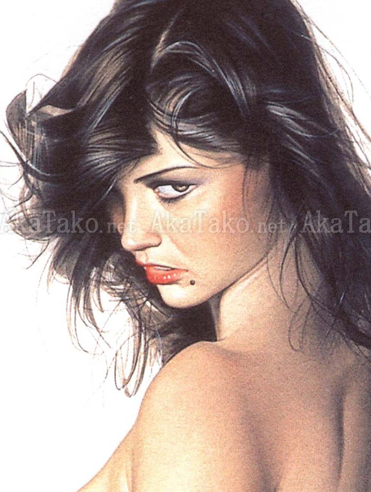 High quality giclée print of a nude brunette (Kandi Barbour?) wearing very high and shiny black latex boots. She holds a whip in her hand and looks back over her left shoulder. Printed on very heavy weight paper (almost 1mm thick!) with hand deckled edges. Print paper is pure white with a border surrounding the printed image. Originally printed in the late 1990s, these have been in storage for a long time.