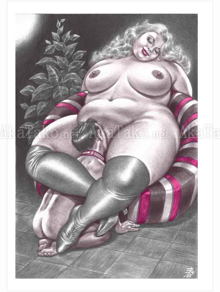 For over 60 years, Namio Harukawa drew the ample buttocks of dominating women. Influenced by the full figure of his childhood drawing teacher, he continued until 72 years of age to create new visions of fleshy women towering over smaller men who were only too happy to see to their every need.