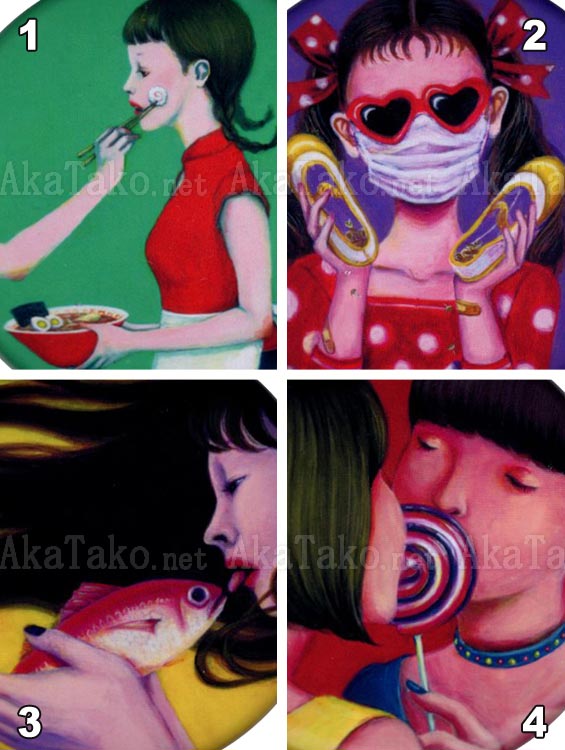 Your choice between four pin badge buttons of Kana Miyamoto's artworks. Each measures approximately 1.7" (4.4cm) in diameter. Heavy pin back.