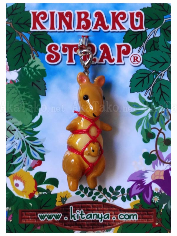 Kangaroo kinbaku charm. Kinbaku cell phone strap handmade in Japan and signed by the artist (in red on back). Comes on a paper display card as shown in second photo and has a lobster claw clasp to make attachment easier.