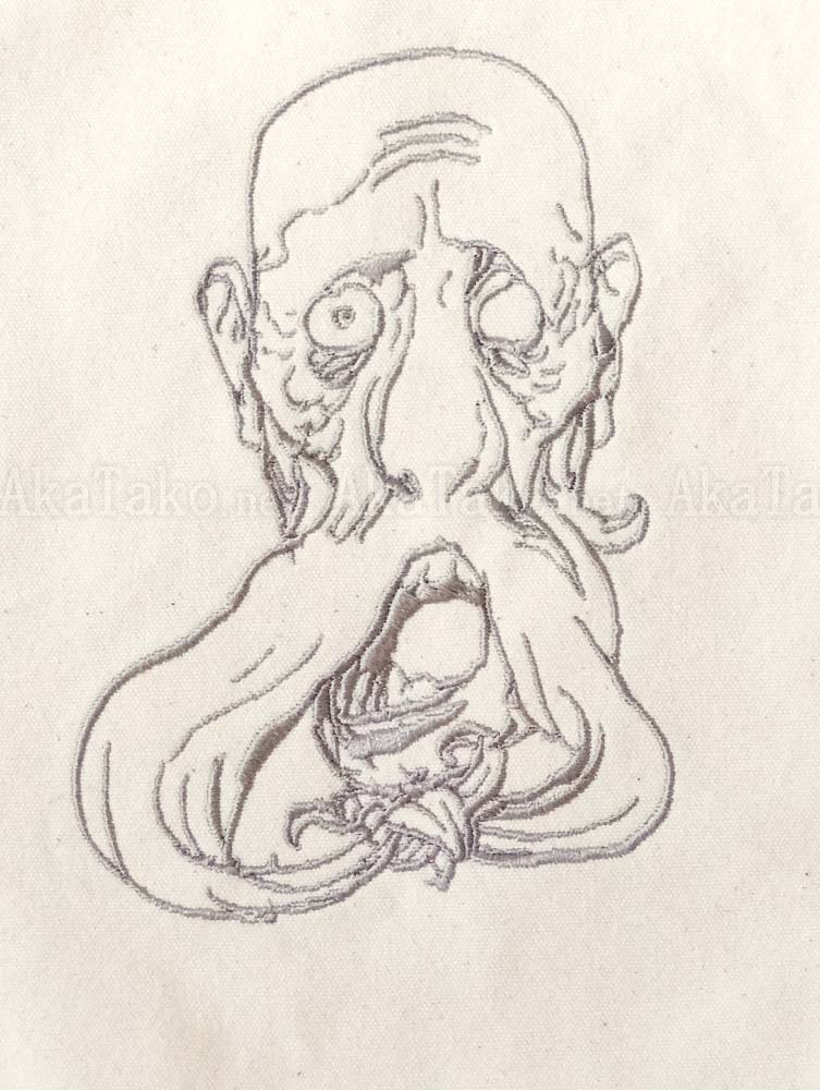 Brand new cotton canvas tote bag with embroidered ojiichan (old man) drawing. Available in black or natural color with silver gray embroidered design.