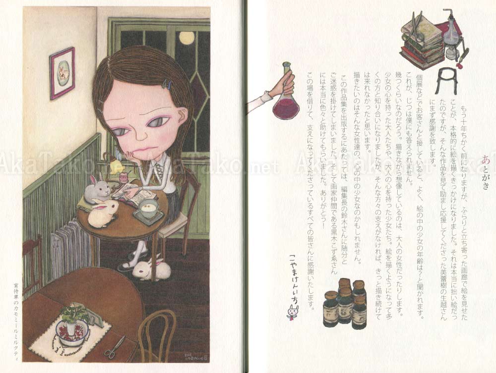 Kenichi Koyama paints a world entirely populated by very sad girls. They hang out in the hospital together and console each other. They play music and games together, reaching inside each other's skirts as if looking for something. The girls are often hurting themselves with scissors or staring into space with downcast eyes.