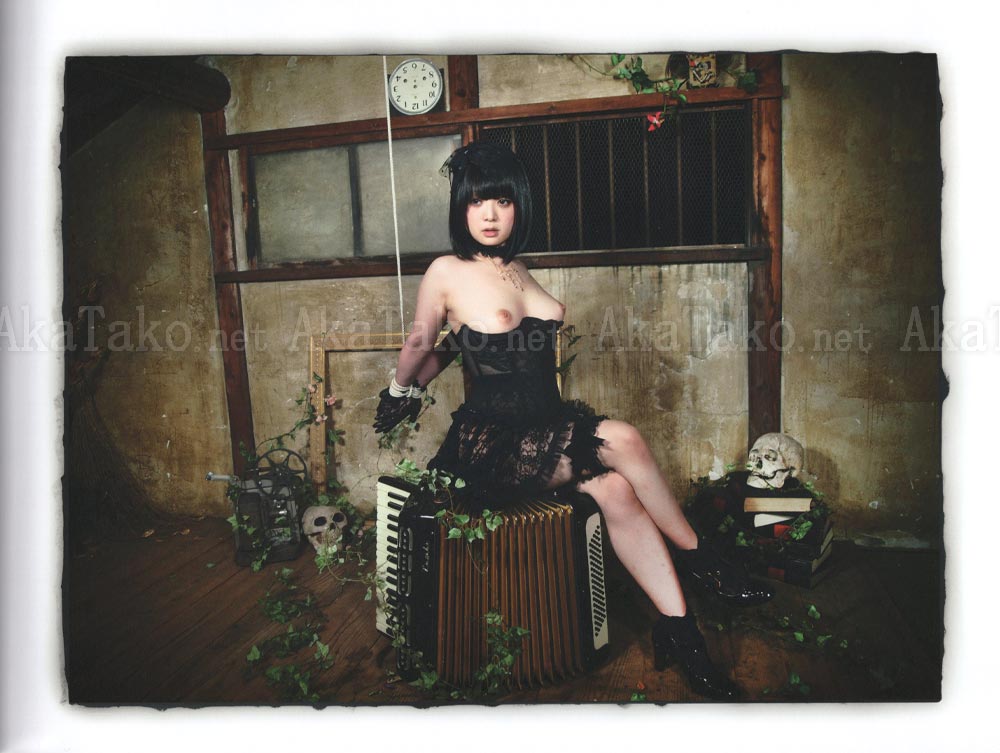 Kenichi Murata depicts pale and fallen beauties from old fairy tales - impoverished aristocratic ladies living alone in derelict houses. The youthful girls contrast sharply with their decayed surroundings. Left page has a smaller photo + text (photo insight, Japanese poetry, etc.); right page has a full page color photo.