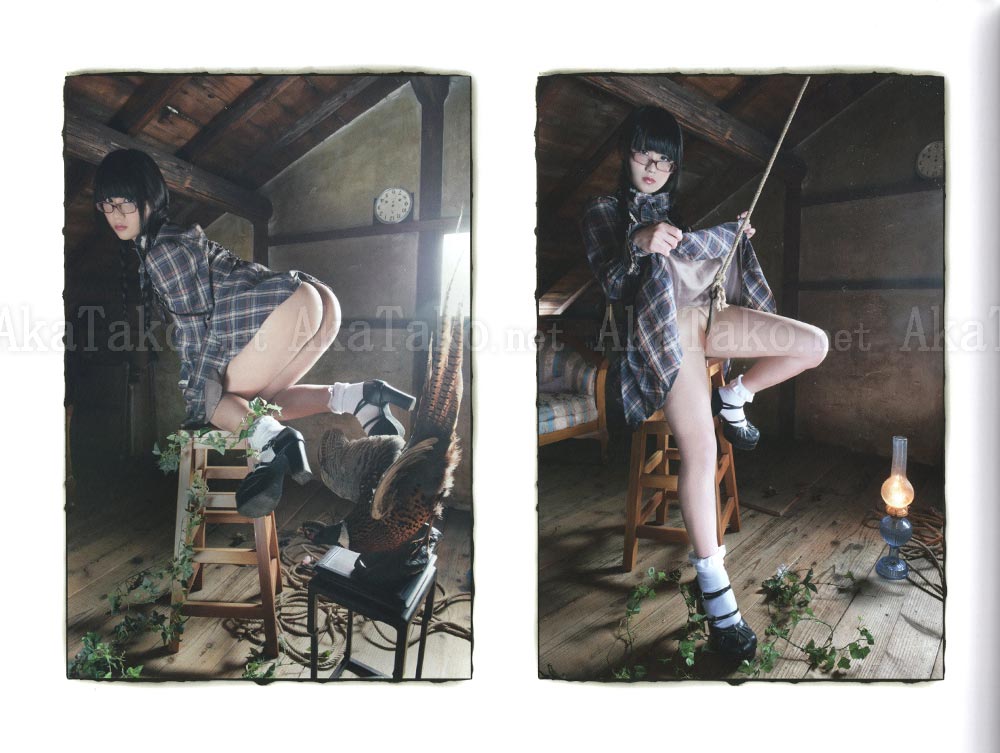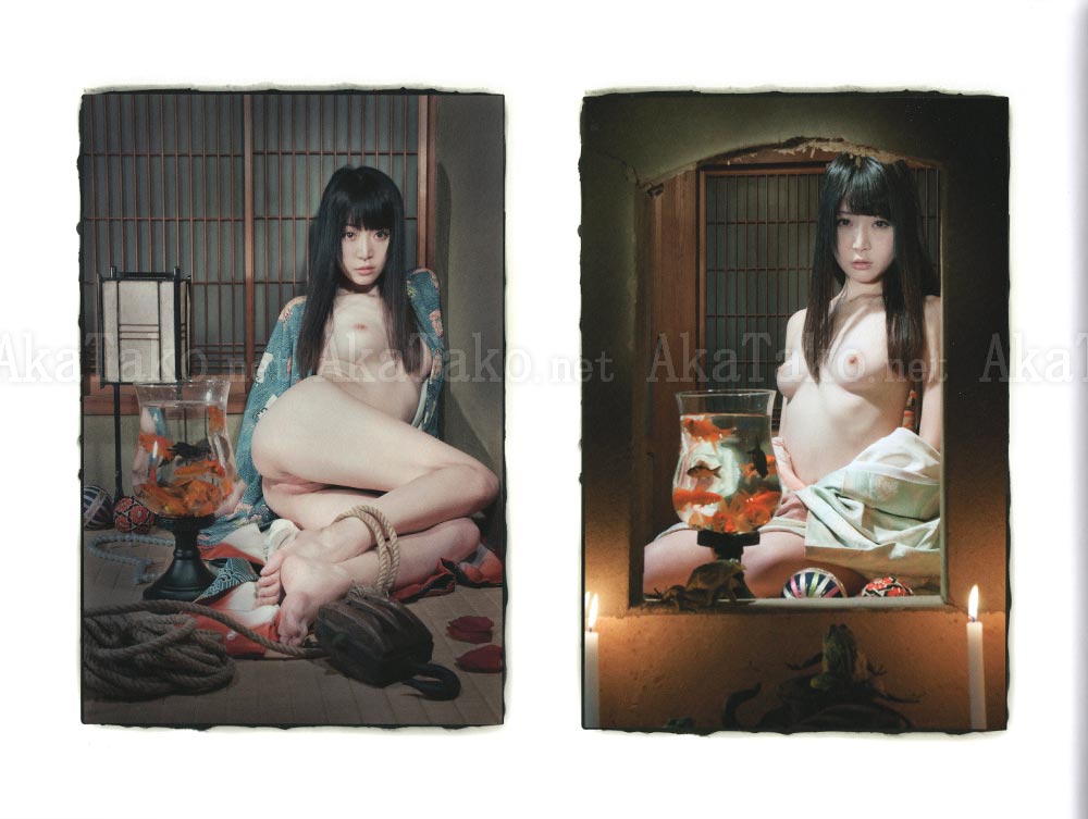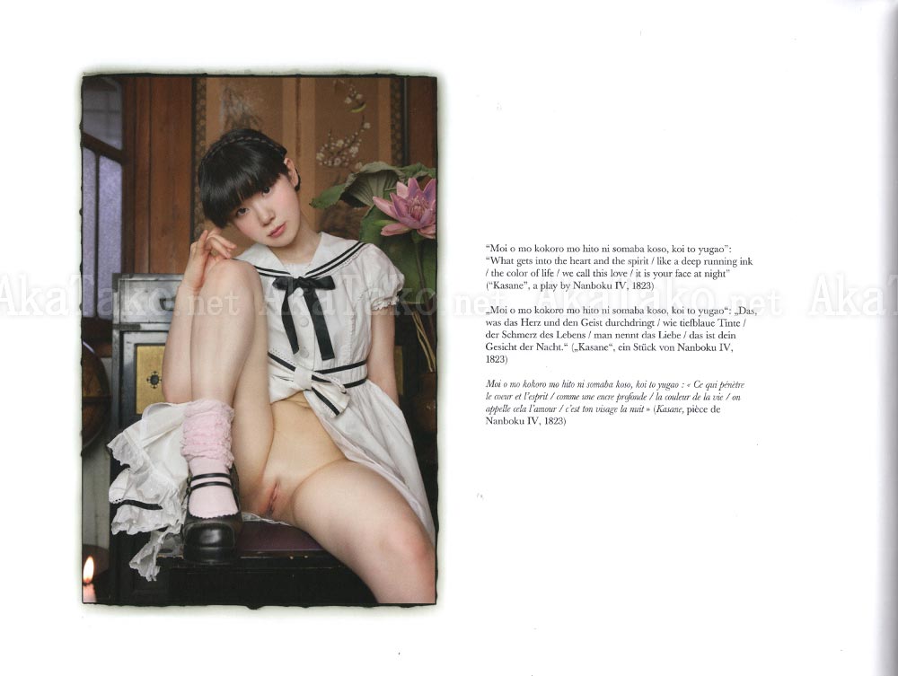 The girls in Kenichi Murata's photos seem to be asking us a question: can you guess what my true form is? They are posing inside rooms invaded by nature, as if their very presence was boosting a return to the wild. Her nudity evokes glory. She lets us stare into her and in return she stares into us with questioning eyes.
