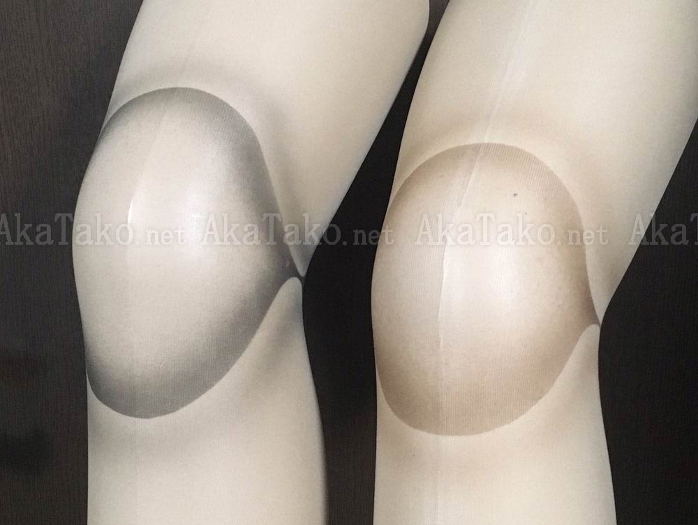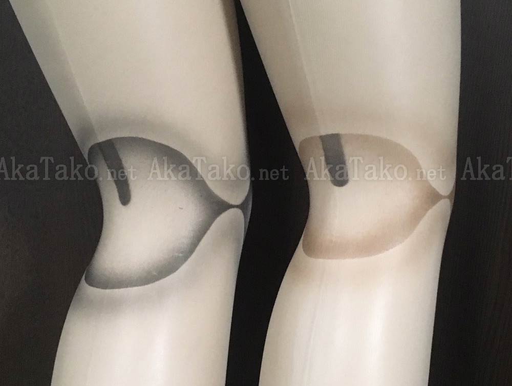 Very light nude/tan color pantyhose with your choice of BLACK or BROWN handpainted "ball joint" effect at the knees.