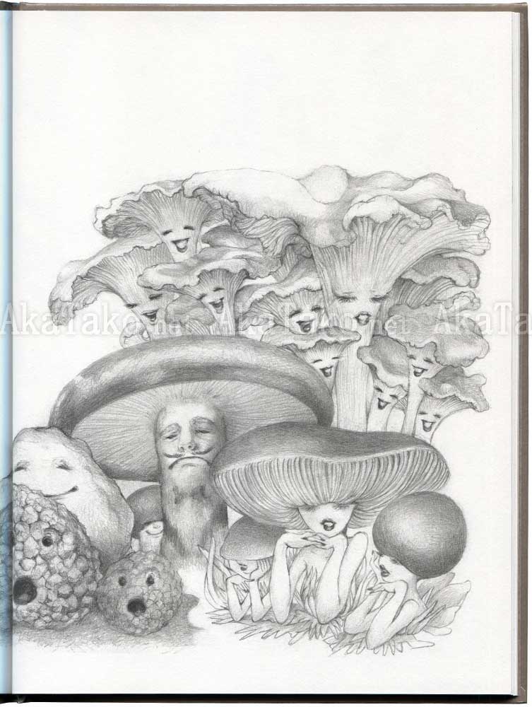 Book of charming pencil illustrations by KYOTARO with accompanying story by Kotaro Iizawa. Instead of shrinking down into an English garden, this time Alice takes a trip through a world populated by talking mushrooms and other fantastic creatures.