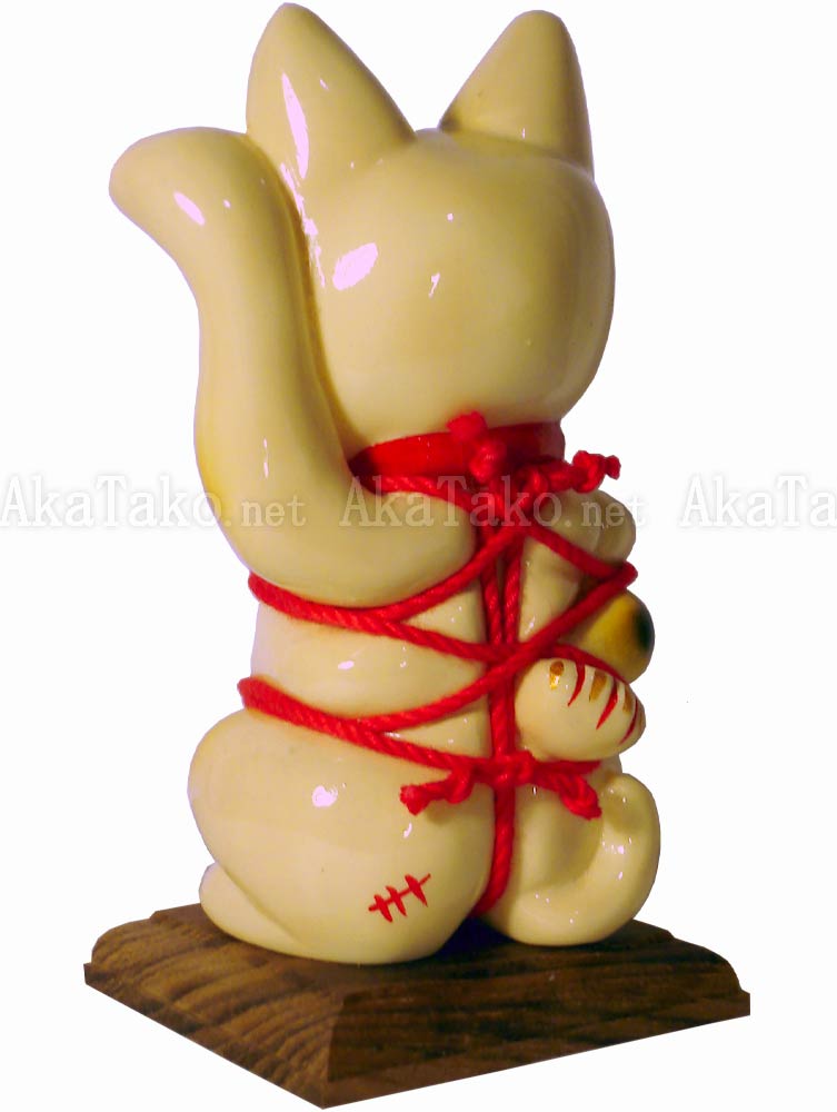 Even though kitty's tied up in Japanese rope bondage nothing can stop Maneki Neko from waving to bring customers (and prosperity!) to your doorstep. Kinbaku doll handmade in Japan and signed by the artist (in red on back). More info on Kitanya.