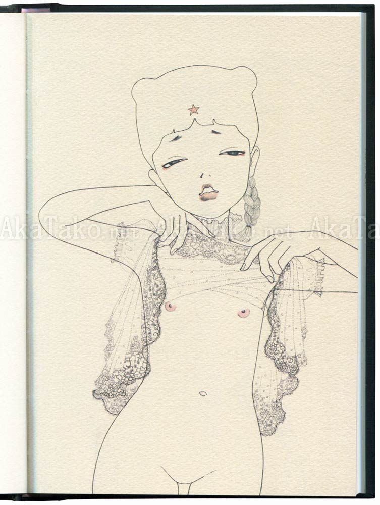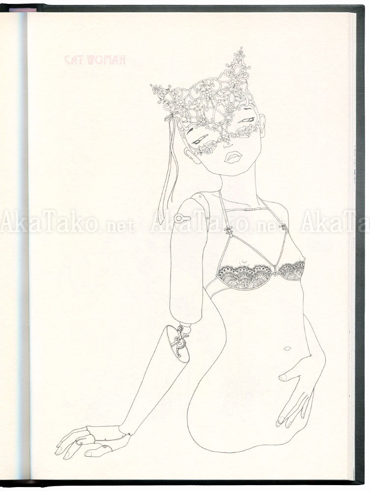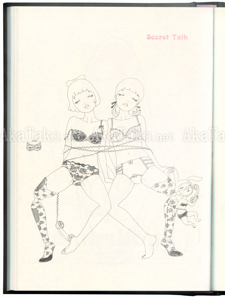 Special exhibition edition of Makiko Sugawa's new book filled with drawings of seductive amputees and friends posing in lacy lingerie. Sugawa is an amputee herself and lost her left leg about 10 years ago. Foreword by Aquirax Uno. Book is split into seven sections: Burlesque, Purity and Nakedness, Playing with Midgets, Beauties and Beasts, Lady Amputee, Duodrama, E is for Erotica. English/Japanese text.
