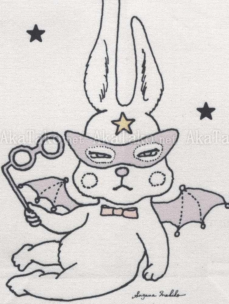 Brand new, reusable, heavy duty tote bag is an off-white heavyweight cotton canvas. Printed with Makiko Sugawa's bunny cherub figure with bat wings and eye mask. Issued during her 2021 exhibition at Vanilla Gallery for her new book "Sweet Room".