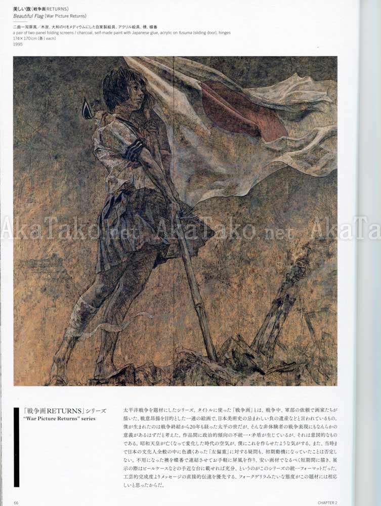 Large catalog retrospective of the works of Makoto Aida. Includes many photos of his exhibitions and works - including installations, paintings, murals, manga, sculptures, etc. Double length fold out pages to show a few of his larger works in their entirety. Bilingual (Japanese/English) titles, descriptions, and in depth analysis.
