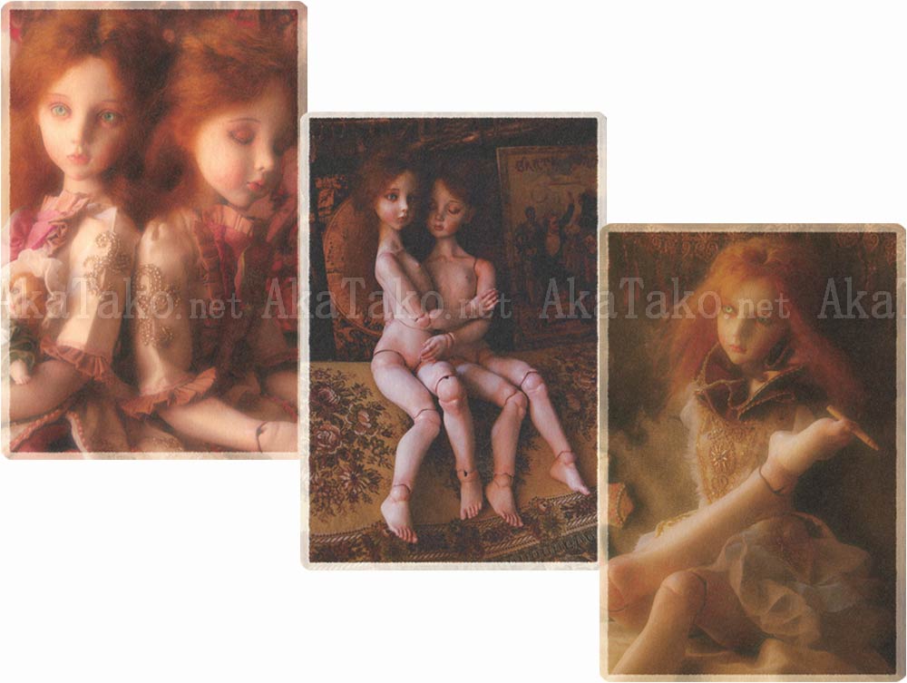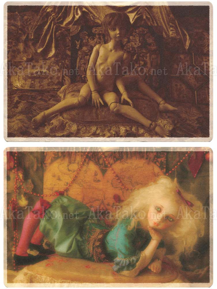 Set of five postcards by featuring the beautiful handmade dolls of Mari Shimizu. Several of the dolls were featured in Yaso Monster & Freaks as sideshow-like characters.