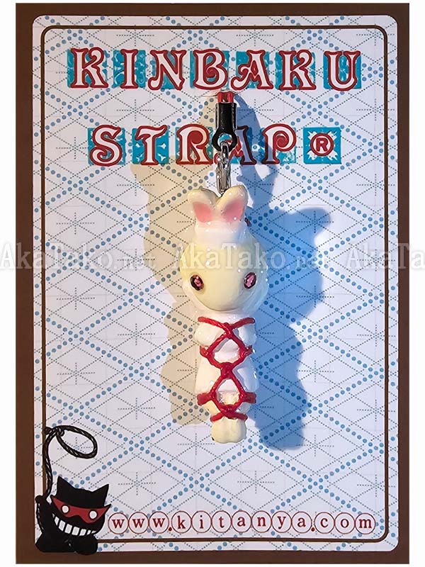 Cream colored bunny in a white nurse's outfit all tied up in Japanese rope bondage. Kinbaku cell phone strap handmade in Japan and signed by the artist (in red on back). Comes on a paper display card as shown in second photo and has a lobster claw clasp to make attachment easier.