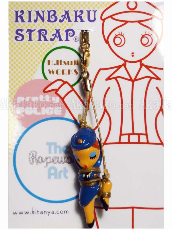 Police lady has her uniform on (including white gloves and black shoes!) as she is suspended with one leg in the air using Japanese rope bondage. Kinbaku cell phone strap handmade in Japan and signed by the artist (in red on back). Comes on a paper display card as shown in second photo and has a lobster claw clasp to make attachment easier.