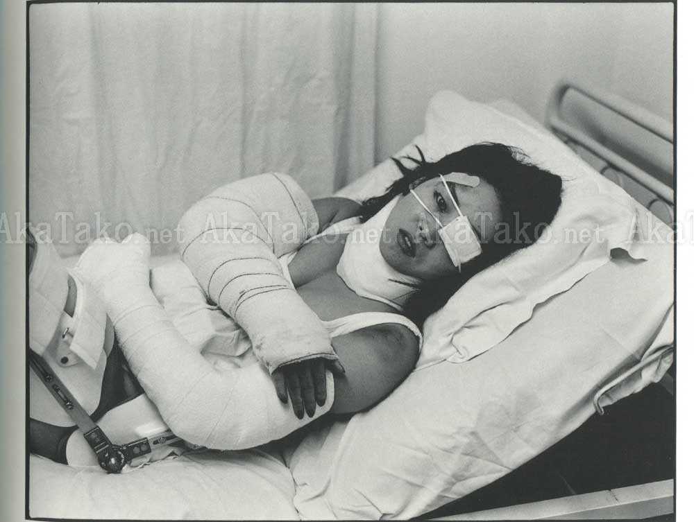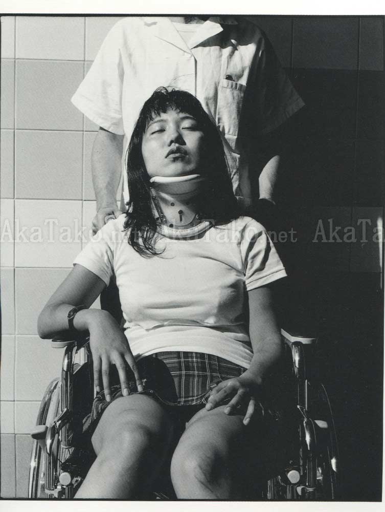 Softcover photography book of injured Japanese girls - in hospitals recovering, in wheelchairs, at windows, in arm casts, slings, bandages, crutches, etc. Bilingual (French/English) intro by Roland Jaccard. All black and white.