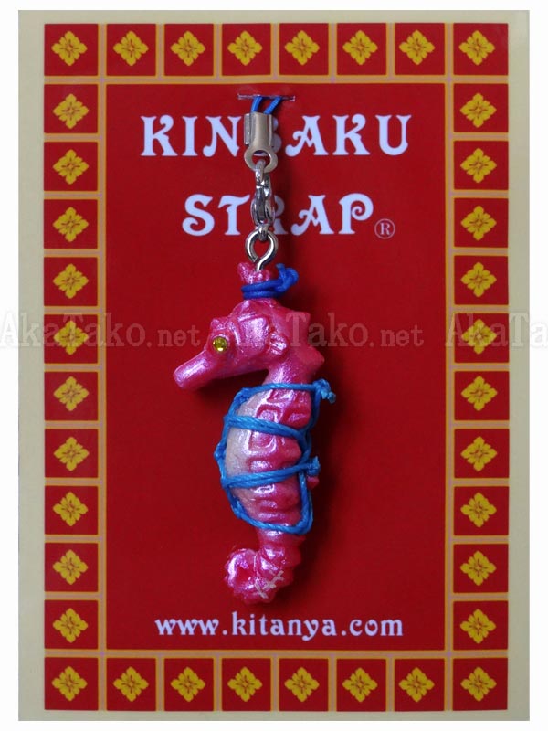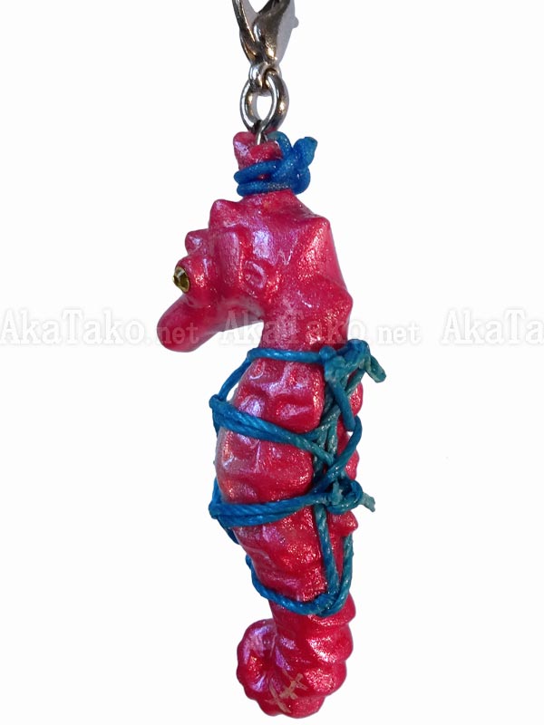 Seahorse kinbaku charm. Kinbaku cell phone strap handmade in Japan and signed by the artist (in white on tail). Comes on a paper display card as shown in second photo and has a lobster claw clasp to make attachment easier.