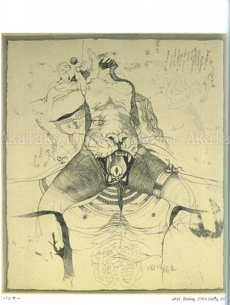 Self-taught Japanese artist Shin Taga is renowned for his detailed and surreal etchings. SIGNED inside the front cover in pencil. Book reproduces over thirty of his artworks (mostly full page images) and includes Japanese text titles and descriptions of each work.