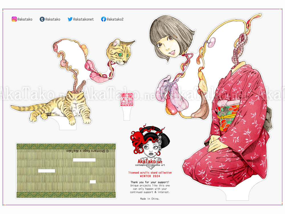 Special collaboration between Shintaro Kago and AkaTako.net ! Clear acrylic art stand assembles to display your favorite artwork in a 3D layered form. "Nukekubi" artwork was created specifically for this project!