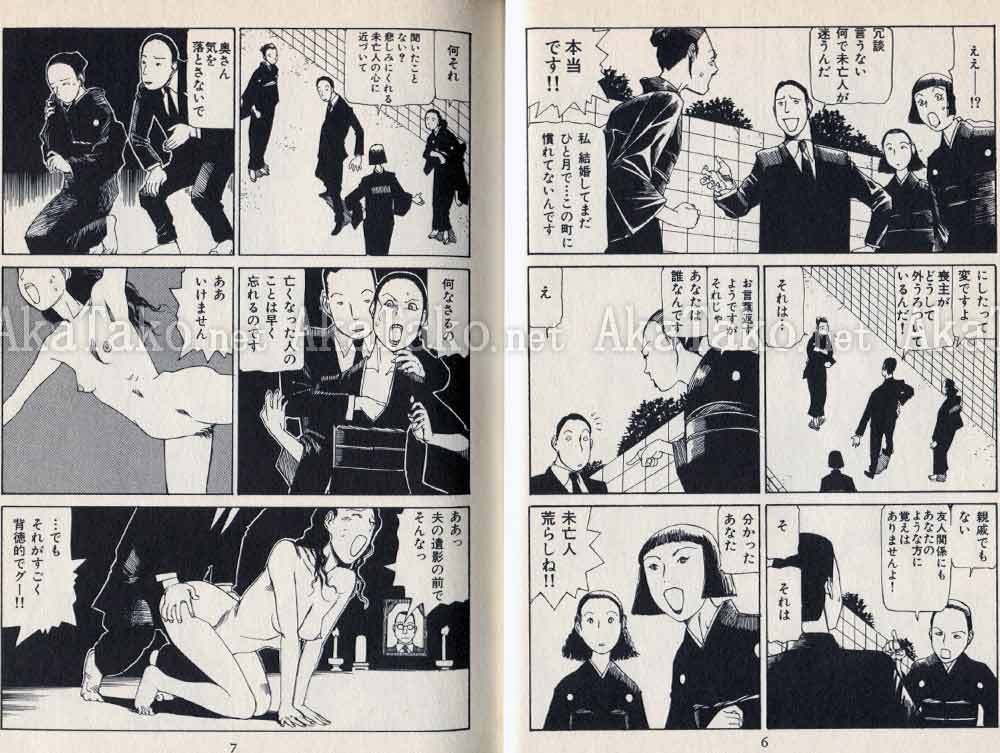 Manga of several short stories that start off with a very large funeral which ends in a lot of graphic sex. UNSIGNED copy. All pages black and white with one last page of full color "paper doll" images.