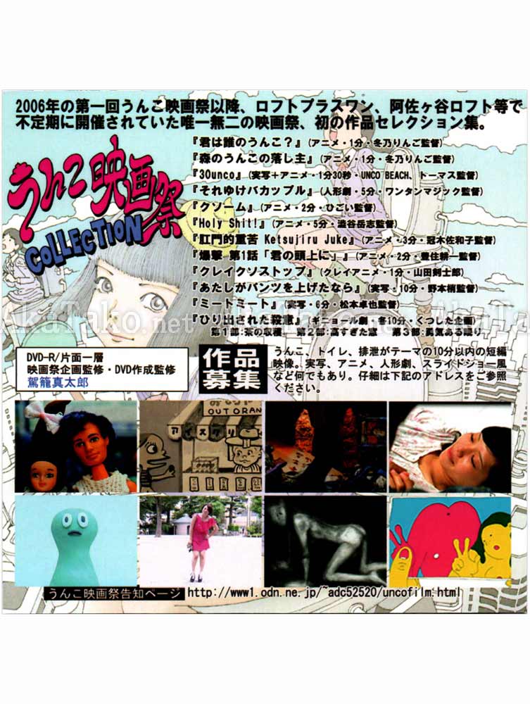 Collection of 12 unko themed films curated by Shintaro Kago. Includes animated, stop motion, live action - most are rather ironic with a good deal of comedy. Approximately 47 minutes running time.