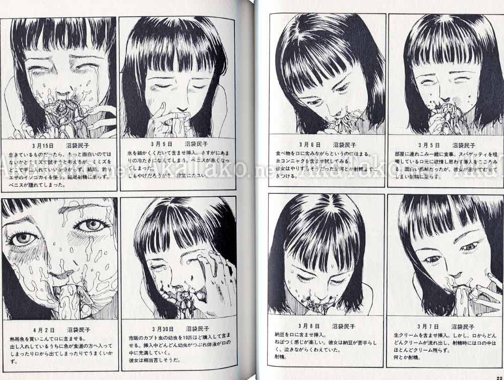 Manga of nine short stories with a lot of school girl violence, some sex, an entire album of (drawn) fellatio snapshots, many pages of seppuku/harakiri, etc. UNSIGNED copy. First page is red and white, remaining pages are black and white.
