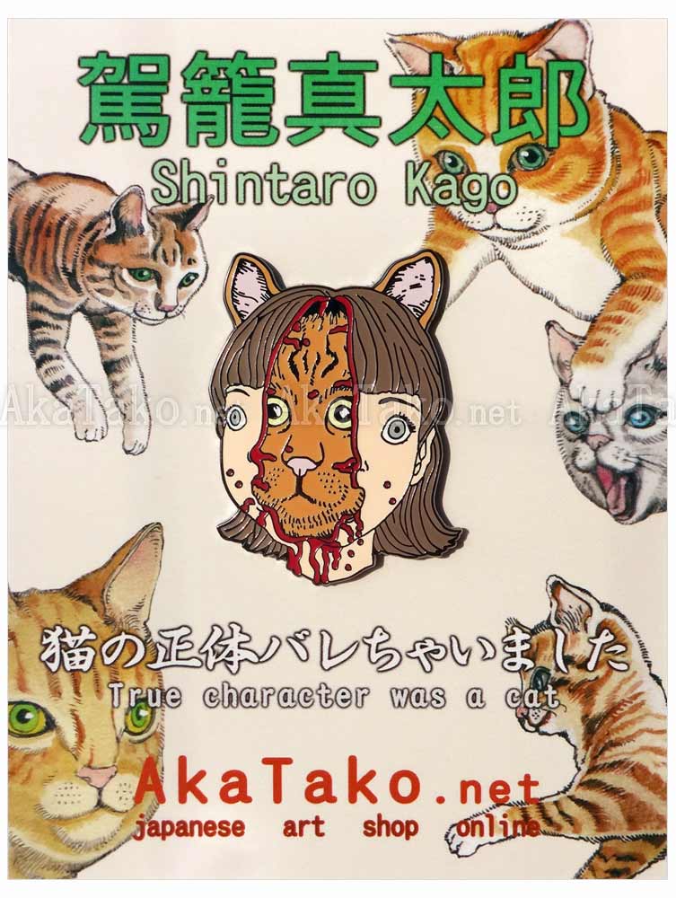 Pins measure 1.5" (38mm) max with double metal butterfly clasps and raised stamp "©Shintaro Kago" on reverse. Custom backing card as shown in second picture. Ships boxed to make sure they arrive to you safely. Pins are hard enamel and "Four Cats" pin includes silk screen finish for the fine details.