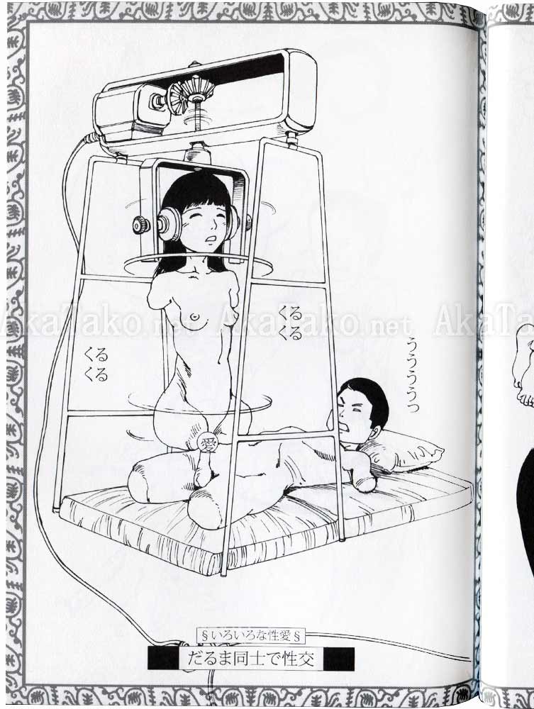 Mini book filled with fanciful sex positions, intense erotic play, and bizarre child births. All images are black and white with Japanese captions and text.