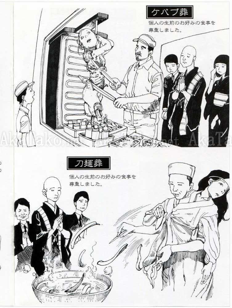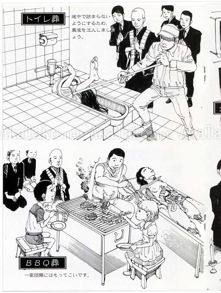 Volume 2 of bizarre alternative ideas to traditional Japanese funeral rites. Cremation is boring! Why not try kebab, mochi pounding, doctor fish, Kamehameha Wave, or even a simple explosion to get rid of the body?