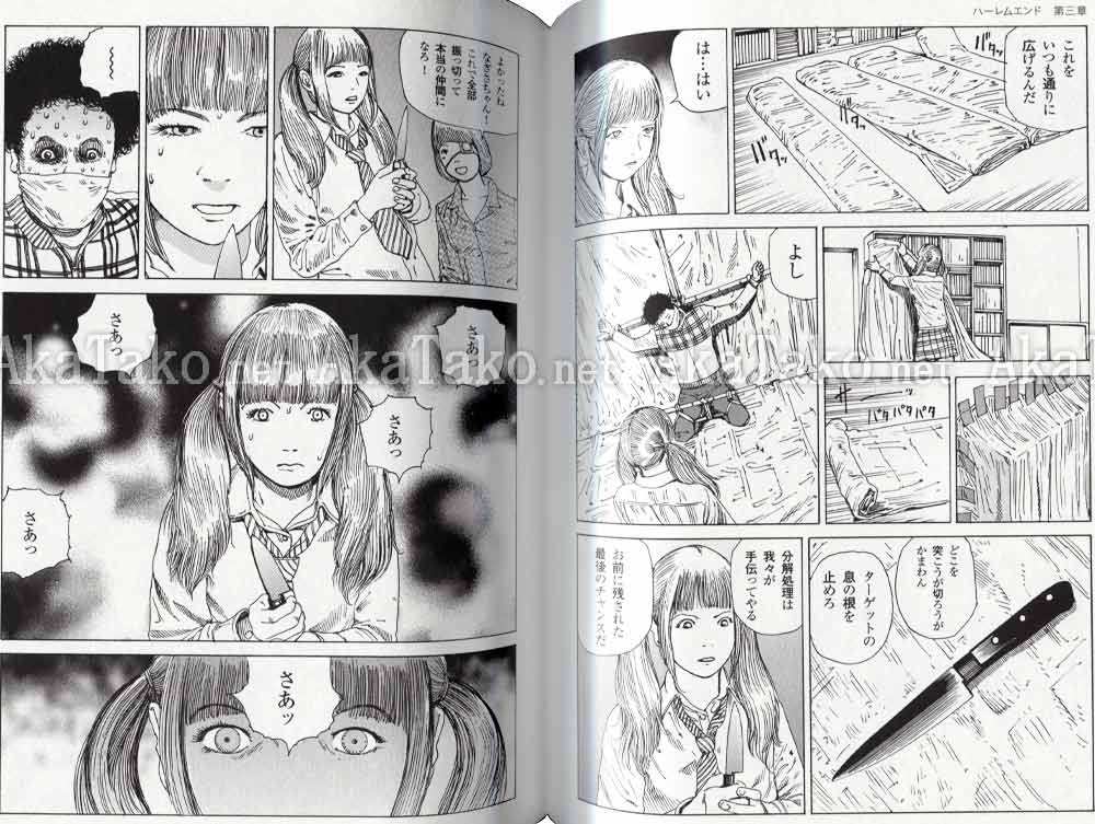 Eight short stories combine in this manga. Most of them show the females in control and wreaking havoc with dismemberment, murder, torture, etc. SIGNED inside the front cover by Shintaro Kago. All pages are black and white.
