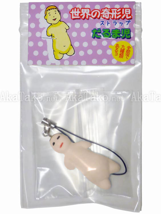 Cell phone strap handmade by Shintaro Kago of a deformed baby. Born without any arms or legs, this happy baby resembles a Japanese daruma doll.