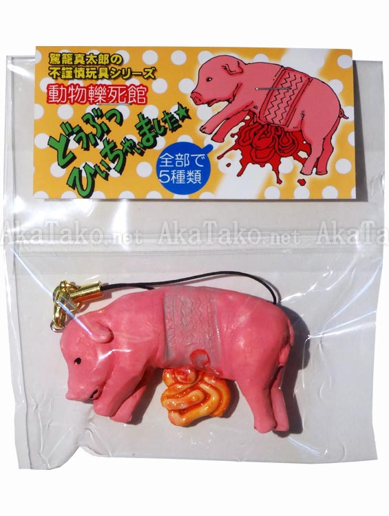 New series of five "Road Kill Animal" cell phone charms by Shintaro Kago. The porky pink pig has been run over and now lies dead in the road. Paint colors may vary a little because they are all individually created. If you need to see an exact photo please request one before buying.