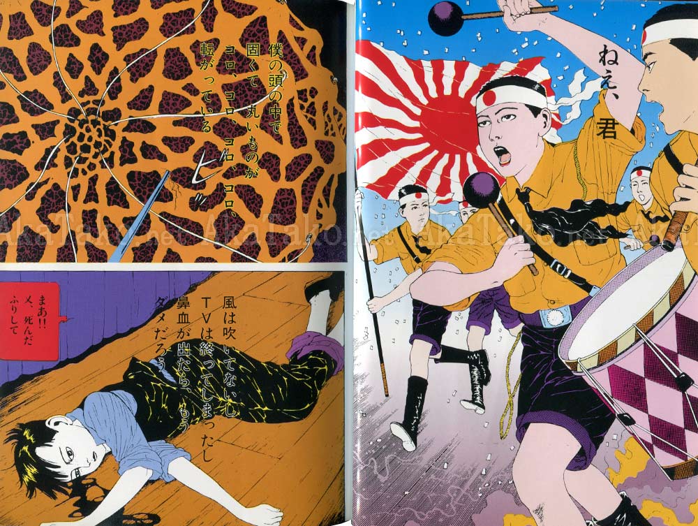 Suehiro Maruo's Paranoia Star is eight sections - each a story filled with graphic violence, sexuality, and shocking images as only he can portray them. All text is Japanese; there are 4 full color pages, 15 black white and red, and the remaining are navy and white. List of story titles. UNSIGNED copy.