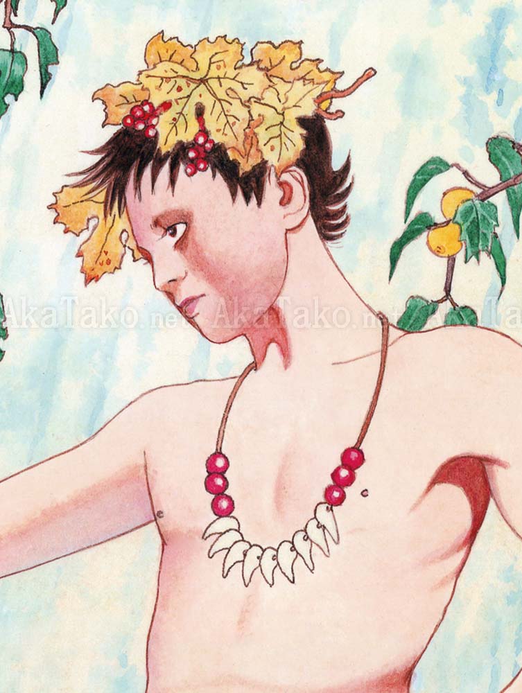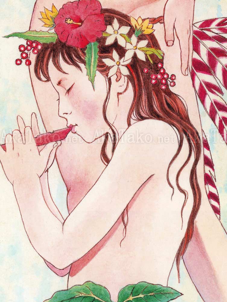 Poster by Suehiro Maruo features full-color artwork from the new manga "The Inferno in Bottles". A boy and girl are perched on a high cliff with a large waterfall behind them. Lush foliage surrounds them.