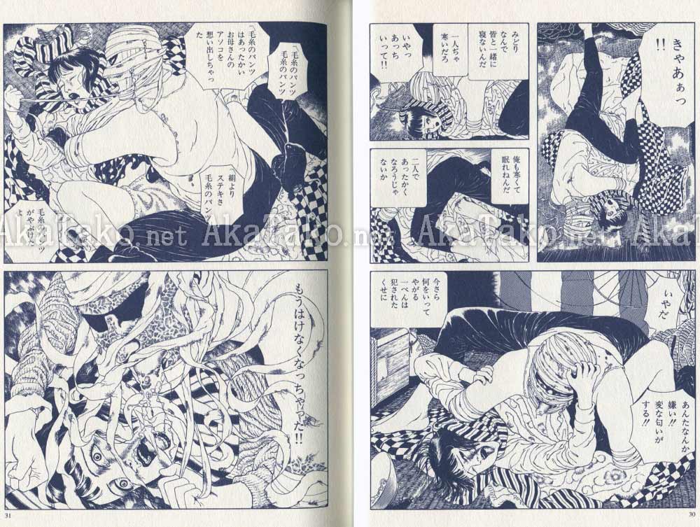 Suehiro Maruo's "Little Girl Camellia" comic book follows the story of Midori - an orphaned young girl who sells flowers in the street. She is taken in by performers in a freak show but lives a life full of abuse and violence. Story was made into a 52 minute movie "Midori" by Hiroshi Harada and a live action movie "Shoujo Tsubaki" directed by TORICO. Text is 100% Japanese. List of story titles.