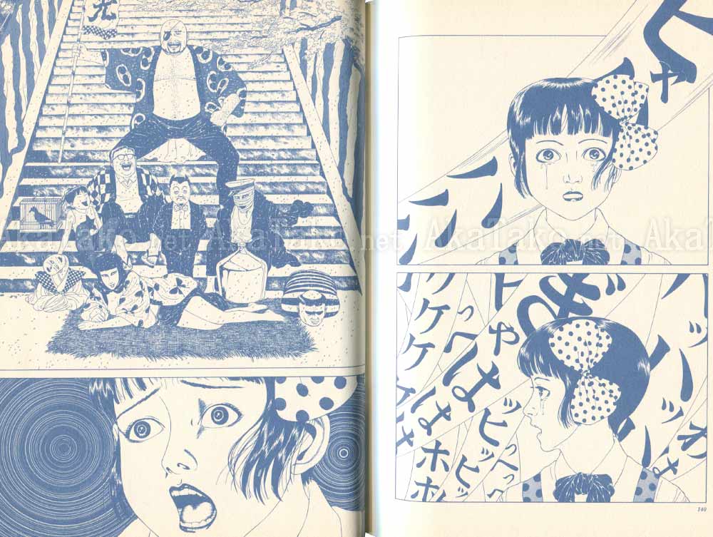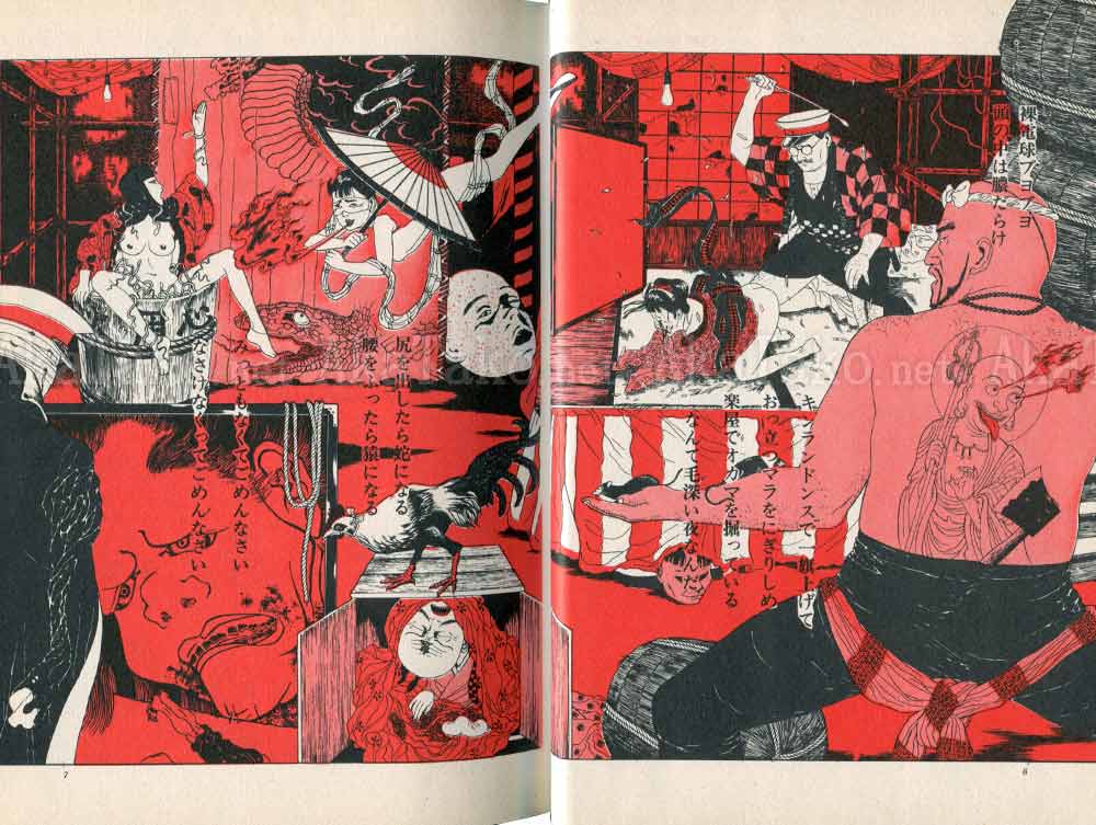 This is the first edition of Suehiro Maruo's best known manga "Little Girl Camellia". Storyline follows an orphaned young girl who sells flowers in the street. She is taken in by performers in a freak show but lives a life full of abuse and violence. All pages are dark blue and white except for the first sixteen that are red, black, and white. List of story titles.
