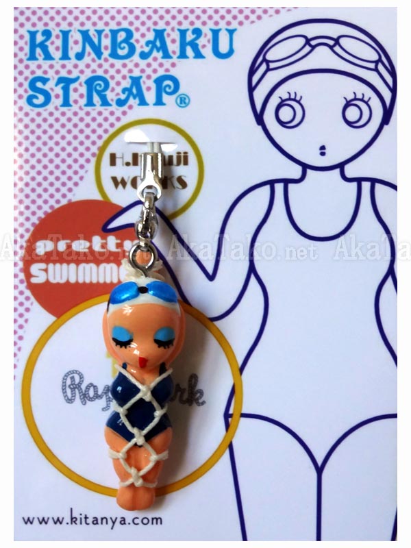 Swimmer lady kinbaku charm. Kinbaku cell phone strap handmade in Japan and signed by the artist (in red on back). Comes on a paper display card as shown in second photo and has a lobster claw clasp to make attachment easier.
