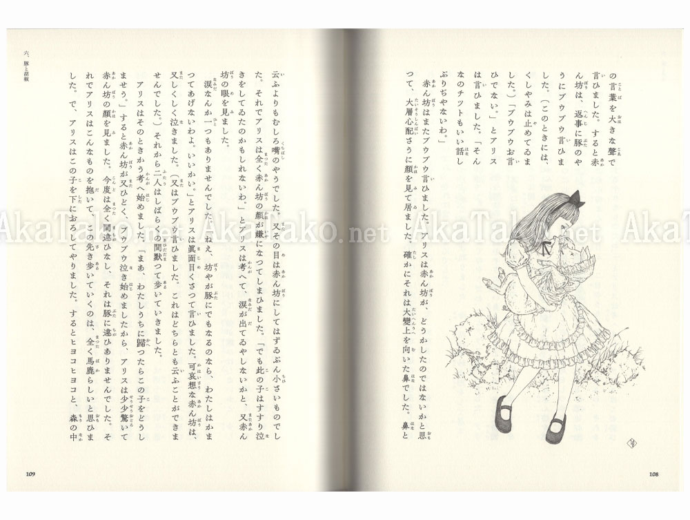 The special edition is limited to only 1000 copies and includes a hand SIGNED and NUMBERED certificate. The book itself has a dark red dust jacket (compared to the dark green of the regular edition) and includes a paperboard slipcase printed with Takato Yamamoto's full color "Alice in Wonderland" artwork.