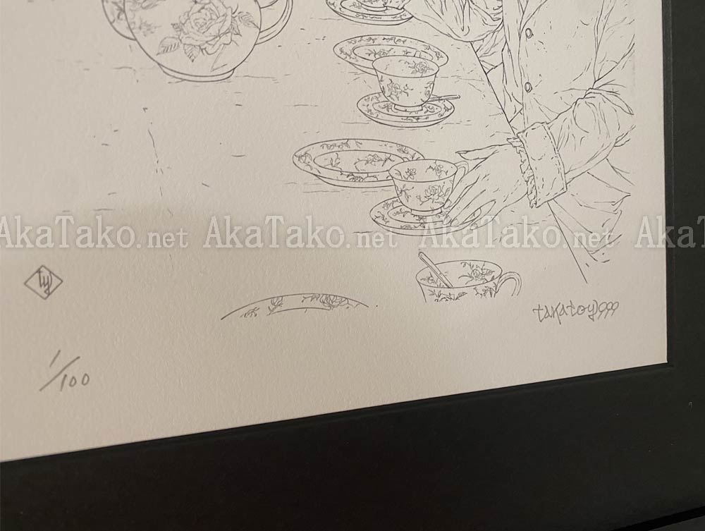 A brand new giclée print featuring Takato Yamamoto's black and white illustration "Mad Tea Party" from his new "Alice in Wonderland" series. Fine art paper with ultra high definition printing. Each print is hand SIGNED and NUMBERED by the artist. Limited edition of 100 prints.