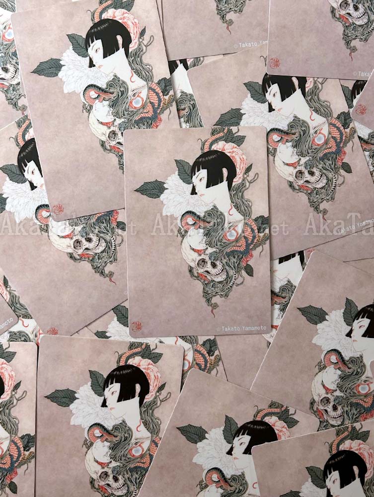 Brand new licensed sticker of "Apparition II" by Takato Yamamoto. Indoor/outdoor vinyl sticker has rounded corners, glossy surface, and measures 2.75" x 4" (70x101mm).