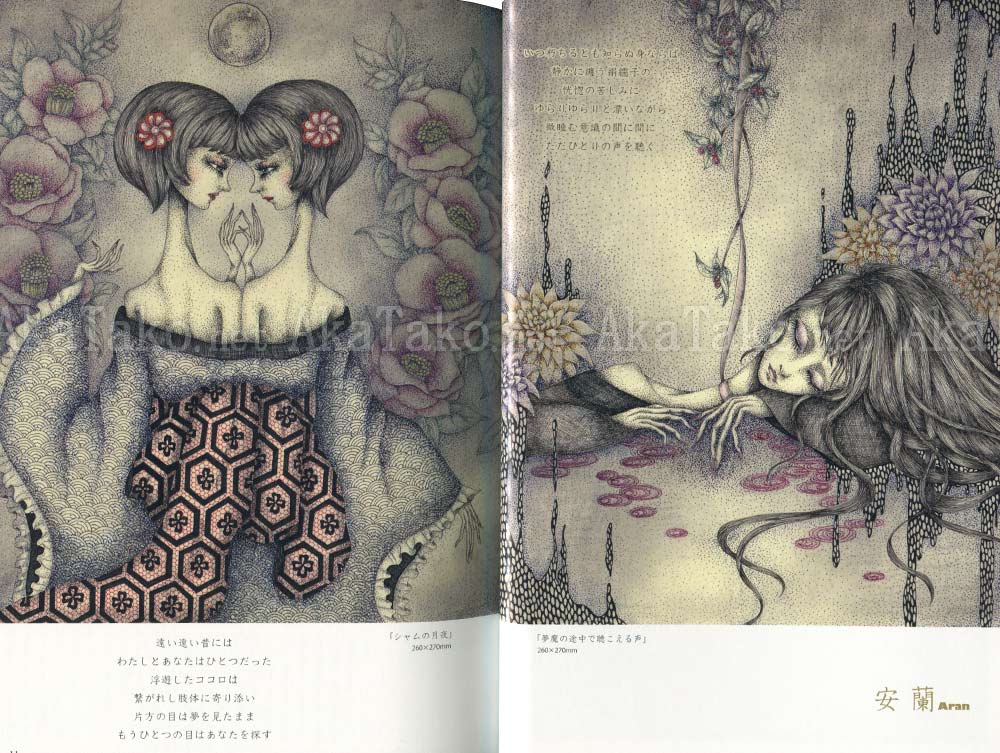 Poems by Paul Celan (「パウル・ツェラン詩集」), Steven Levenkron (スティーブン・レベンクロン) "Girl in the Mirror" 「鏡の中少女」, Amano Katan, Kafka (カフカ) "Metamorphosis - A Hunger Artist" 「変身・断食芸人」, The Machinist (マシニスト), Asumiko Nakamura (中村明日美子) "Double Mints" 「ダブルミンツ」, The Corpse Bride (コープスブライド), and more.