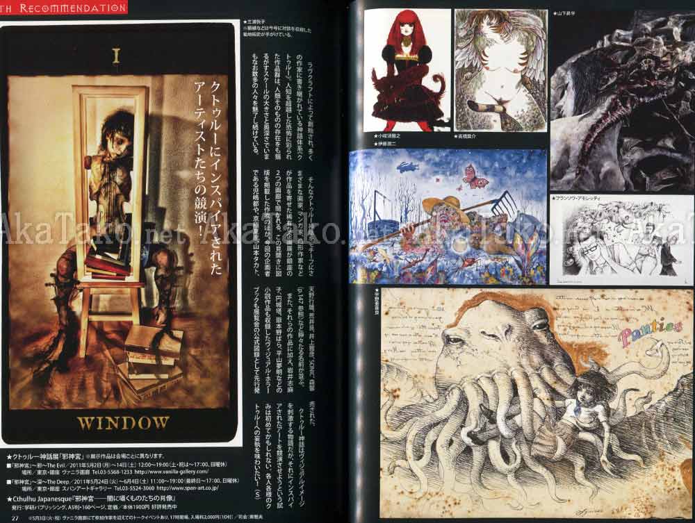 Kaoru Mori x Atsushi Tani, Yuka Moriya (森夜ユカ), Tacji Kikuchi, Jin Yamamoto, Muttoni, Hiroaki Kuwabara, Hideki Koh, Neqro, Mari Katayama, Kenichi Koyama (こやまけんいち), Midori Hayashi, Kenichi Murata (村田兼一), Azusa Nishihara (にしはらあずさ), Tania Kovats, Kenny Horie (堀江ケニー), Hans Bellmer, and many more.