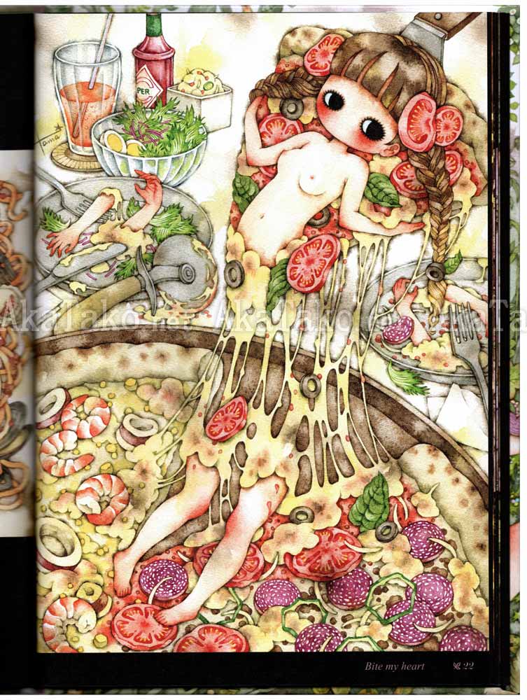 Includes 34 new full color paintings, two images of fold out black and white pages meant for you to copy and color in for yourself, plus photos of 3D works by Kunihiko Nakano (中野クニヒコ).