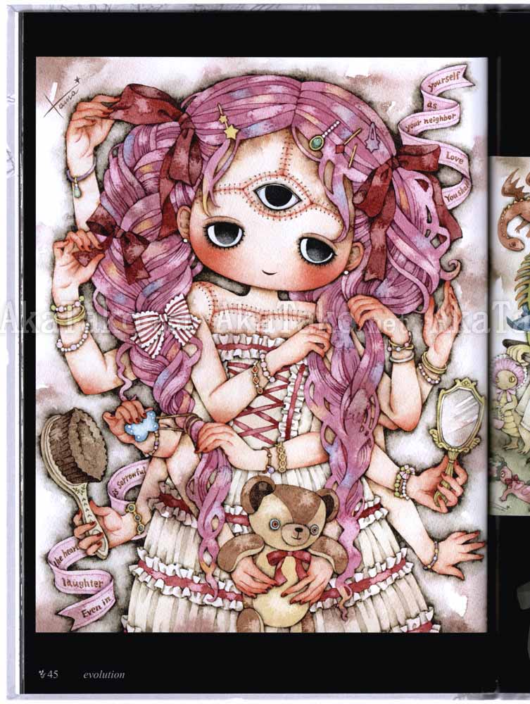 Tama's seventh book is a cute and eerie paradise. Deep Memories of childhood games - a girl's regrets and conflicts. Book sections are Mistic, Irony, Scare, Dreamy, and Nostalgia. Includes over 40 new, full color artworks.